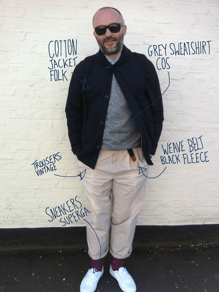 I’m also rocking some standard-ass Superga’s, some Irish Cottage socks, a Black Fleece woven belt, a J Crew cotton shirt and Folk cotton jacket with a pretty interesting collar. Pie-crust collars, I think they’re called. But as that all sounds a bit Elizabethan, or just, a bit, you know, ‘pastry’, just ignore that.