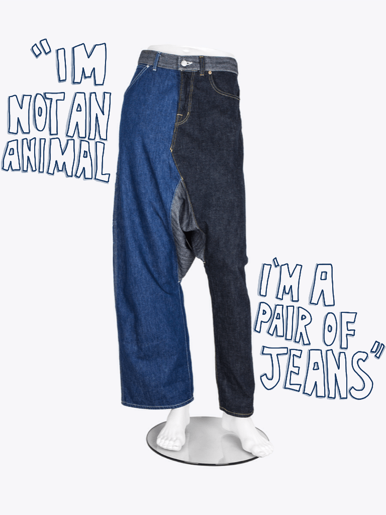 This is actually a serious pair of jeans. They’re by Comme des Garçons Ganryu and they cost 230 European Euro Pounds from Number 3.