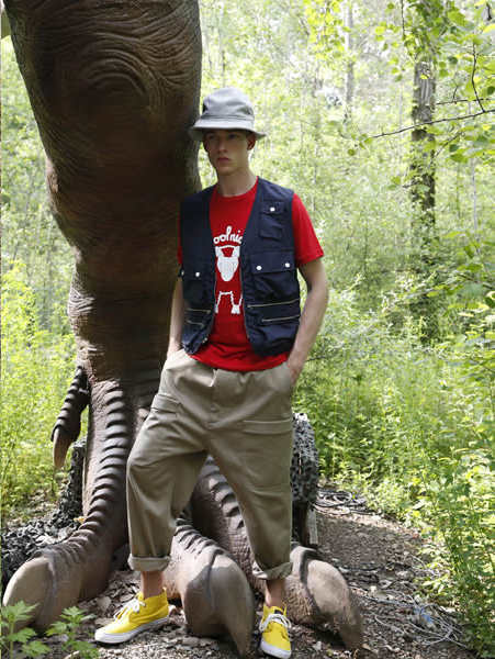 Gobble fucking gobble. Mark NcNairy’s stylings for Woolrich Woolen Mills’ SS15 look edibly good. Assuming you like the taste of cloth. And buttons. McNairy’s skill in constantly refining and reimagining workwear staples kicks up a gear here. There’s a bunch of shit I’d seriously consider masterminding a crime for. Nothing nasty. Just a bit of old-school, society catburgling. You know, dressed in black, knocking off some pearls from a safe, leaving a cool calling card, abseiling out the window. I don’t want to have to push any minor royals down stairs.