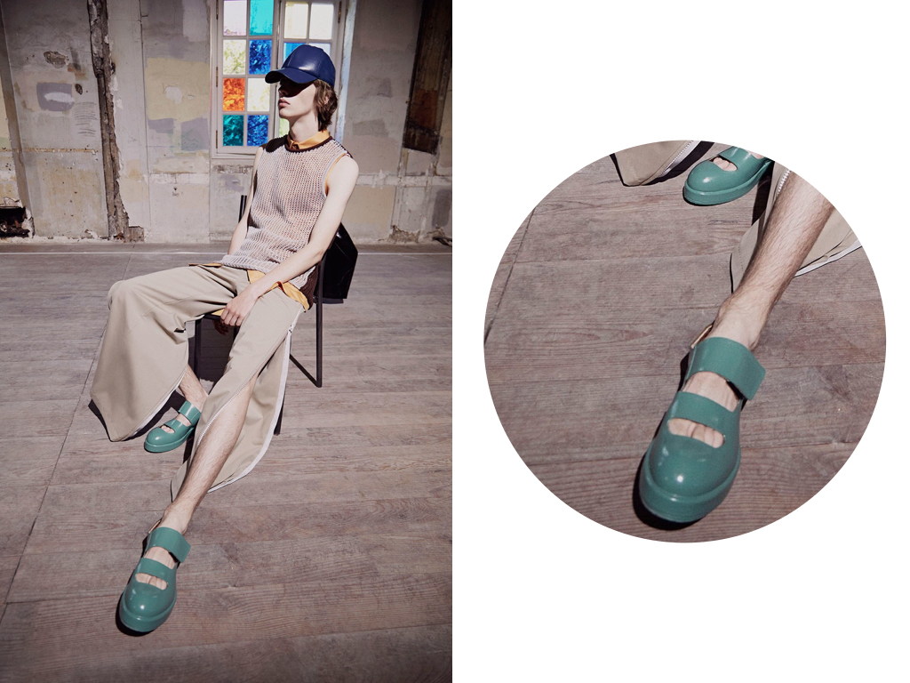 Simultaneously exhibiting the fundamental characteristics of both Birkenstocks and wellies, the SS17 footwear from Acne Studios manages to horrify and intrigue in equal measure. Whether you have a hankering for anti-bacterial footwear is neither here nor there – this is what the future looks like people. A post-capitalist future of chemical warfare, pestilence, flesh-chewing mutants and fashion-forward rubber sandals.