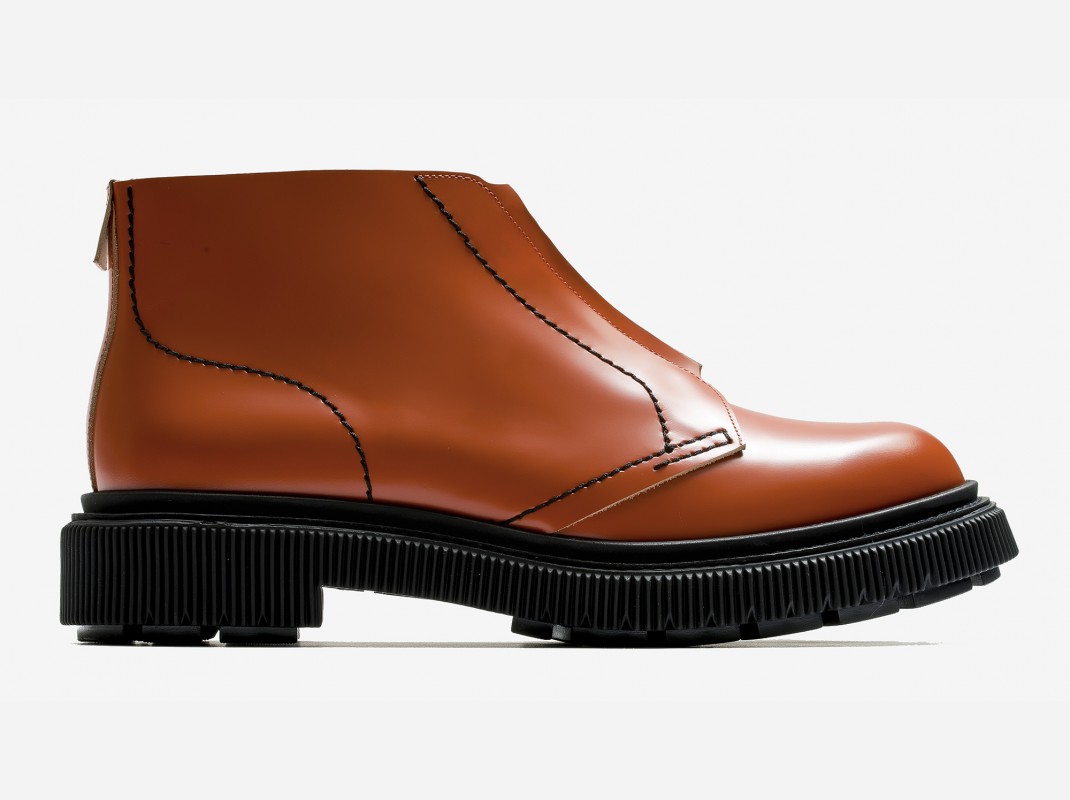 Those workweared up in customary orSlow washed cottons and crinkly EG denim might balk at these. They’re all a bit polished. A bit zippy. A bit farrrrshon. They’re not quite the kind of suedey, Japanesey, Clark’s reimaginings so often found on these pages. But open your mind brotherman. These numbers by French cobblers Adieu have a regulation chunky sole, a full-power orange hue and some brutal topstitching. This is an event shoe. These shoes are literally happening. Now. Or thereabouts.
