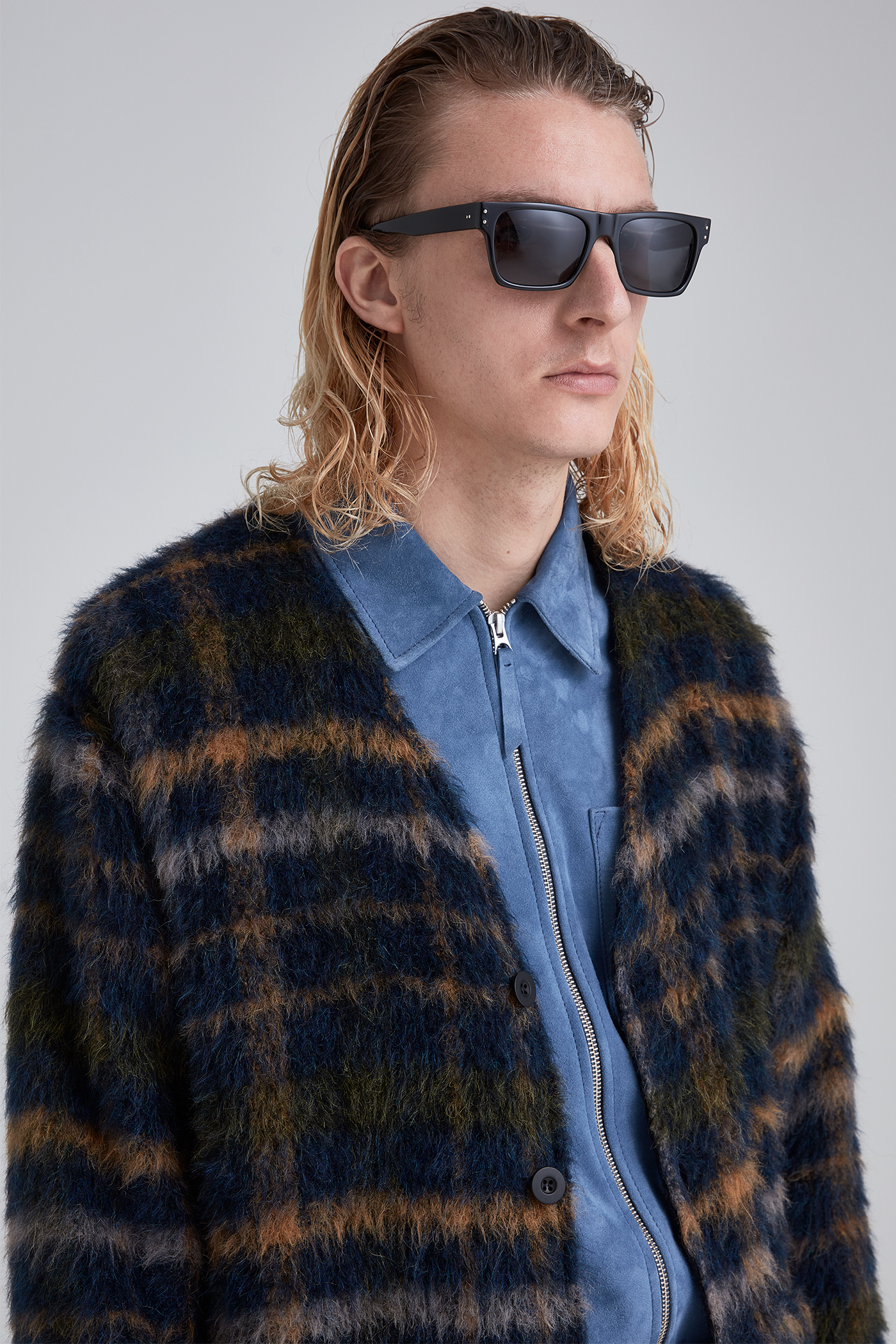 Our Legacy rarely pops up on these pages these days. Partly, I guess, because it’s so widely available. A big turn off for la-de-da label-geeks. But then Our Legacy rarely produce heavy-hitting stand-outs like this furry-as-fuck heater. I have no idea who this dude thinks he is with his thrift store shades and ‘end of the world is nigh’ demeanour, but that cardie is killing.