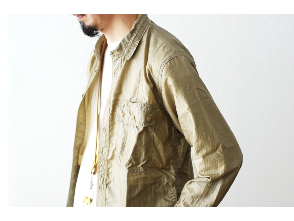 This relaxed shirt also boasts enough tricksy detail to make it interesting. There are two types of walnut buttons and snap buttons onboard, as well as variation in breast pocket design, a drawcord hem and a pair of hidden waist pockets. I suspect it’s trying to be a jacket, but the elementary laws of physics insist it’s a shirt.