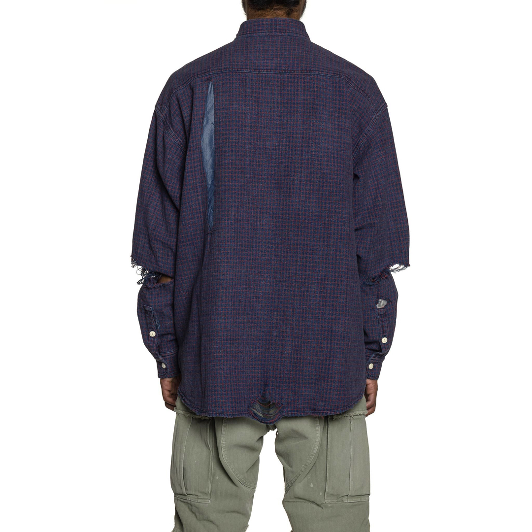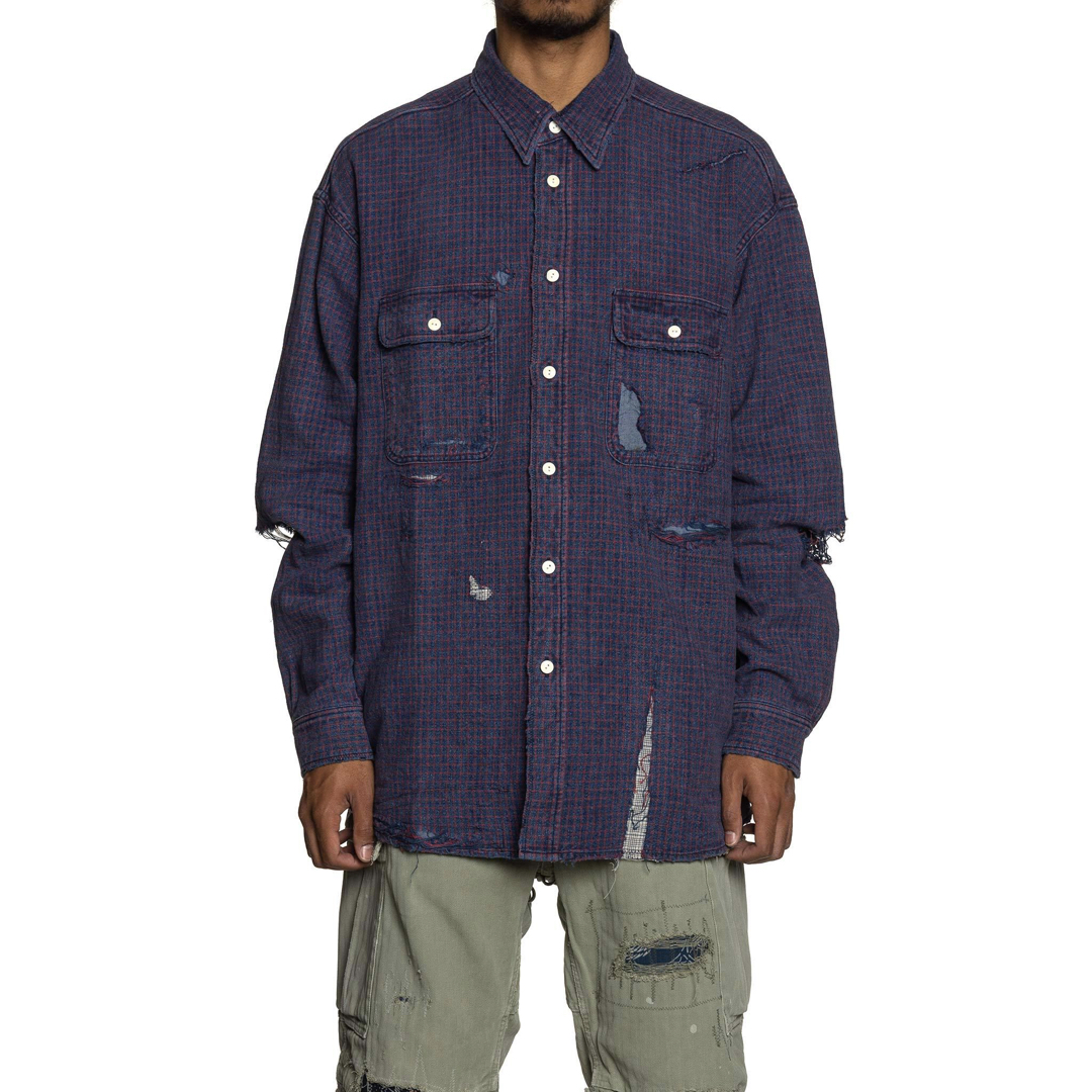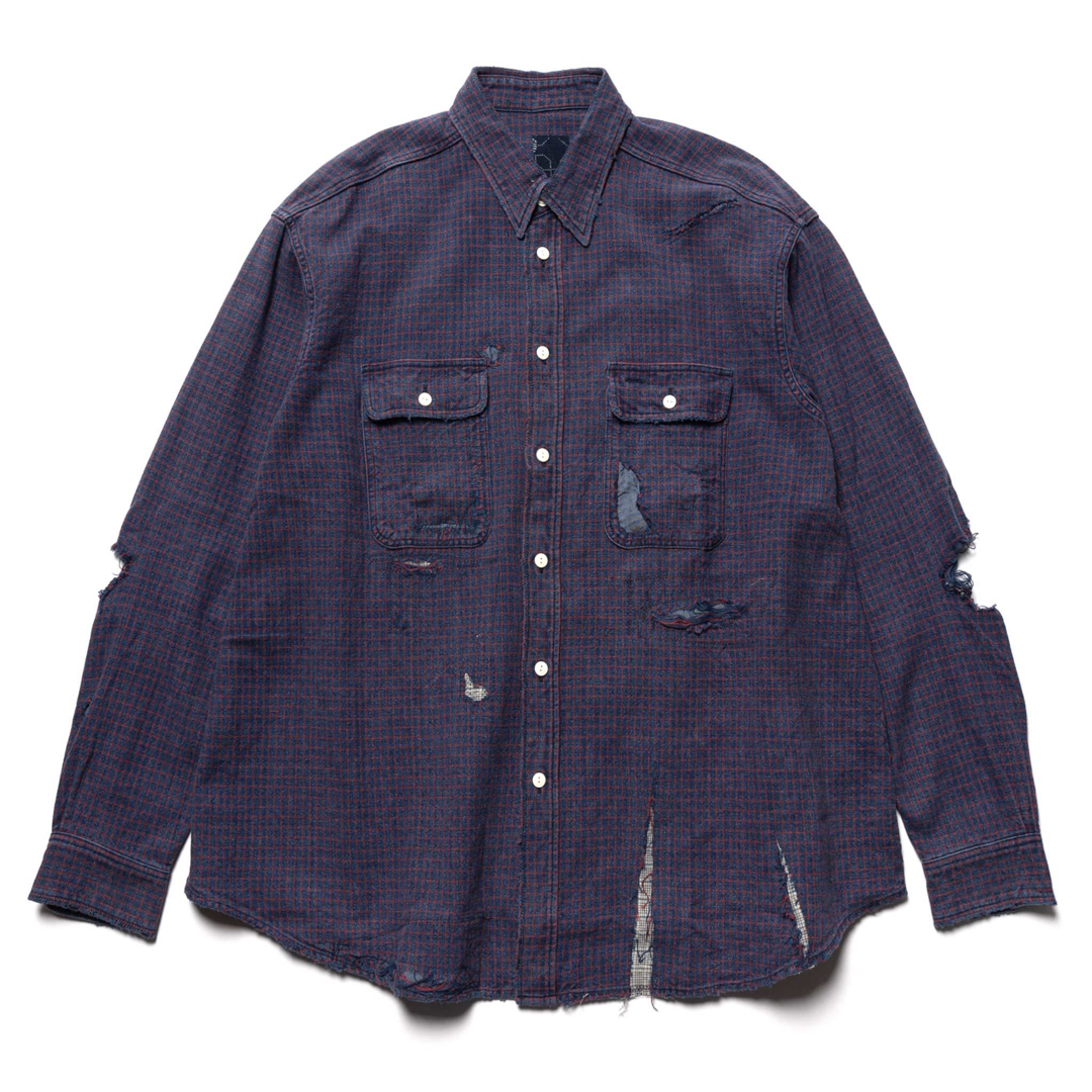This Visvim shirt has undergone what is termed a ‘crash’ process. Over at retailer Haven they explain, “the shirt features intricate distressing, damage and hand patched repairs throughout.”