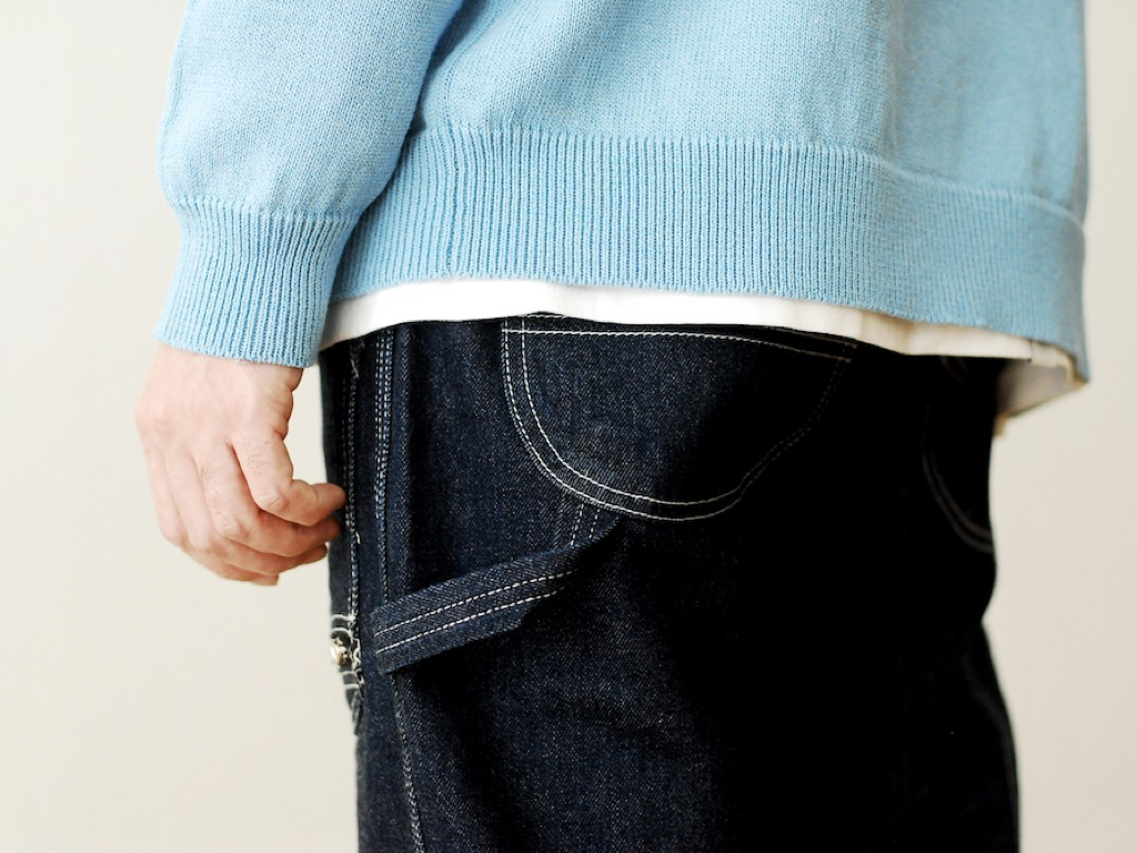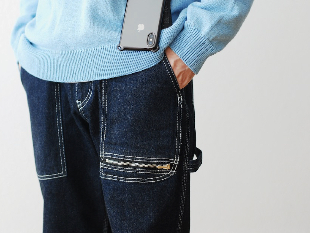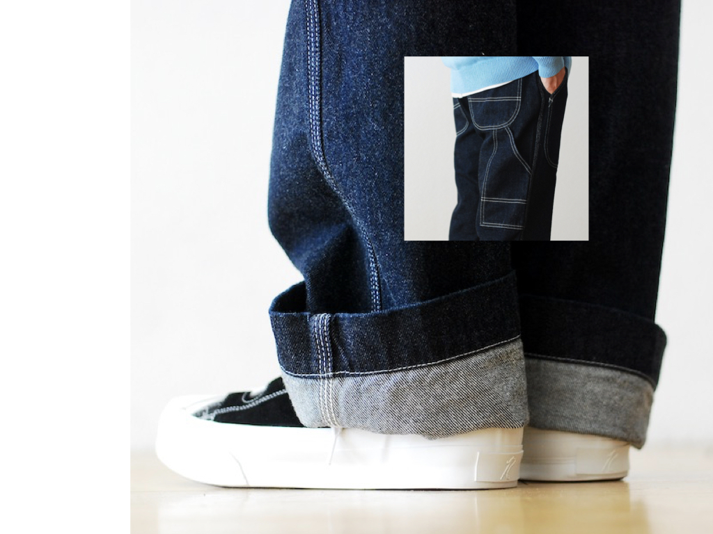 They’re really just simple painter’s pants. I’d size right up and wear them looser than the guy in the images, but I think the combination of the contrast stitching and the zipped pocket offers an interesting take on the idea of a more formal jean.